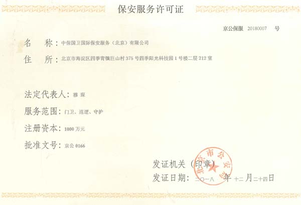 中保國衛(wèi)國際保安服務(wù)(北京)有限公司,屬中保國衛(wèi)集團(tuán)旗下子公司。能全方位的為大型客戶提供優(yōu)質(zhì)的安保、押運(yùn)服務(wù),是集人防和技防于一體的新型正規(guī)化綜合安保押運(yùn)服務(wù)企業(yè),提供人防、物防、技防、聯(lián)網(wǎng)報(bào)*、非武裝押運(yùn)等安防相關(guān)的一站式服務(wù)。 公司在國內(nèi)多省設(shè)立有分公司及分支機(jī)構(gòu),著重提升安全押運(yùn)、智能技術(shù)押運(yùn)及安全技術(shù)防范相關(guān)的服務(wù),業(yè)務(wù)范圍覆蓋全國一、二線城市、港澳地區(qū)以及海外地區(qū)。安保方面主要為政府機(jī)構(gòu)、金融機(jī)構(gòu)、企事業(yè)單位、醫(yī)療衛(wèi)生、高等院校、工業(yè)園區(qū)、大型商場(chǎng)、高檔住宅、智能商務(wù)樓、大型活動(dòng)提供門衛(wèi)、守護(hù)、巡邏、押運(yùn)(非武裝)、安全檢查、保安特勤、私人護(hù)衛(wèi)、消防中控、安全技術(shù)防范、遠(yuǎn)洋護(hù)航等全方位服務(wù),同時(shí)面向國際市場(chǎng),為中資企業(yè)在“一帶一路”沿線國家投資提供境外安保服務(wù)。 >> 更多內(nèi)容 |